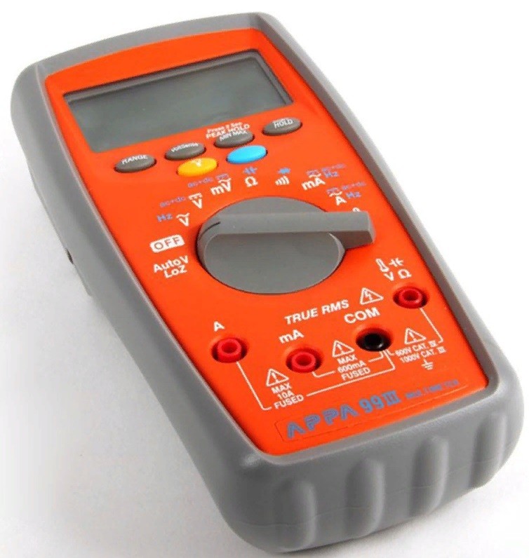 | Максимальное разрешение (APPA 99III) | 0,1 мВ / 0,01 мА / 0,1 Ом / 0,1 Гц / 1 нФ / 0,1 °С |