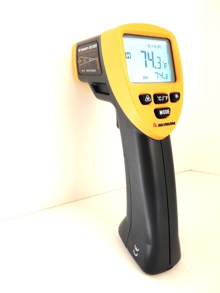 Инфракрасный термометр АТЕ-2530 предназначен для измерения температуры поверхностей пирометрическим способом. Пирометр АТЕ-2530 позволяет отображать на дисплее 2 температуры, сохранять в памяти максимальное, минимальное и среднее значение.