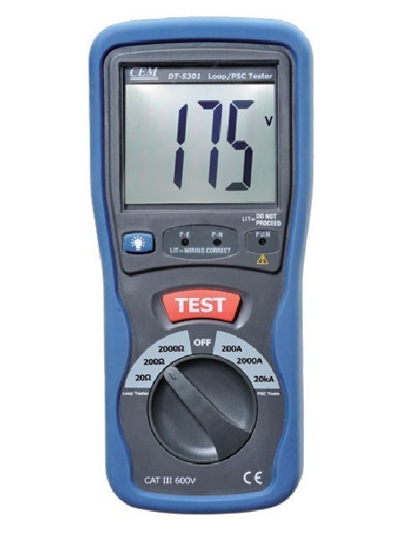 DT-5301 – портативный прибор для измерения сопротивления петли фаза-нуль и тока короткого замыкания.