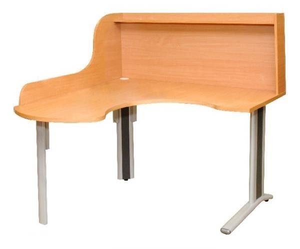 - Стол офисный угловой с эргономичной формой столешницы и фигурной настольной перегородкой по одной стороне.