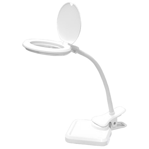 Светильник ALL-6596 это увеличительно-осветительный блок со светодиодным источником света и двояковыпуклой линзой. У модели есть возможность выбора теплого и холодного света. Позиционирование на столе может осуществляться двумя способами: крепление прищепкой или установка на подставке.